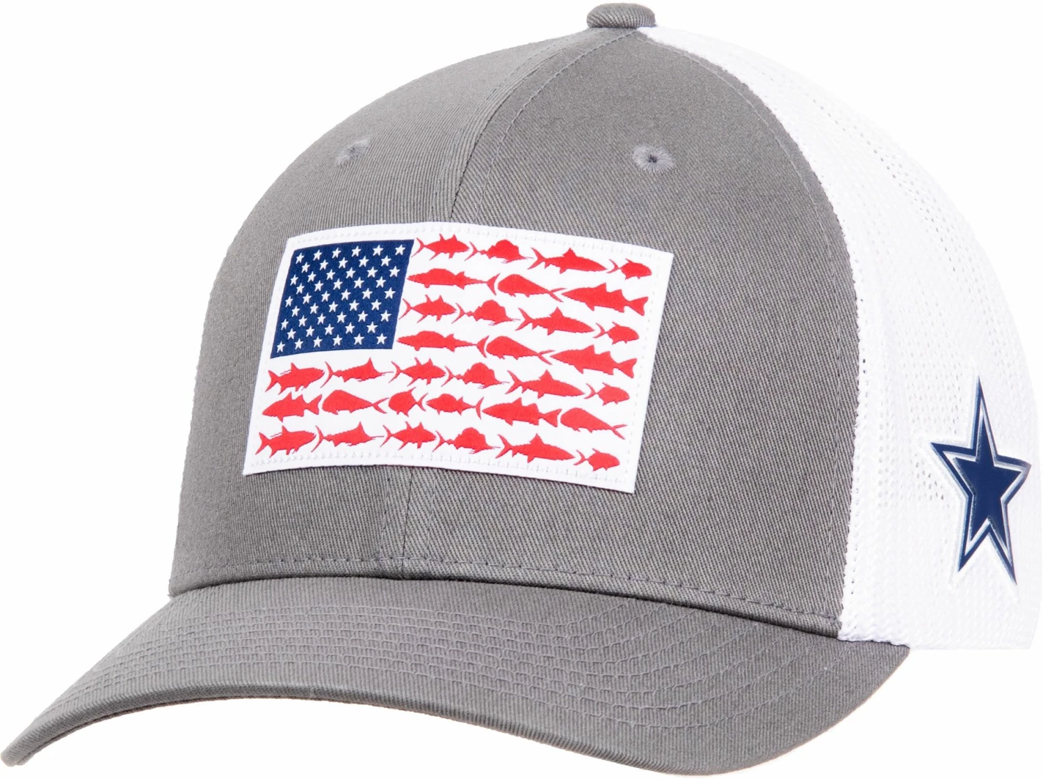 - Embroidered flag patch with fish instead of stripes